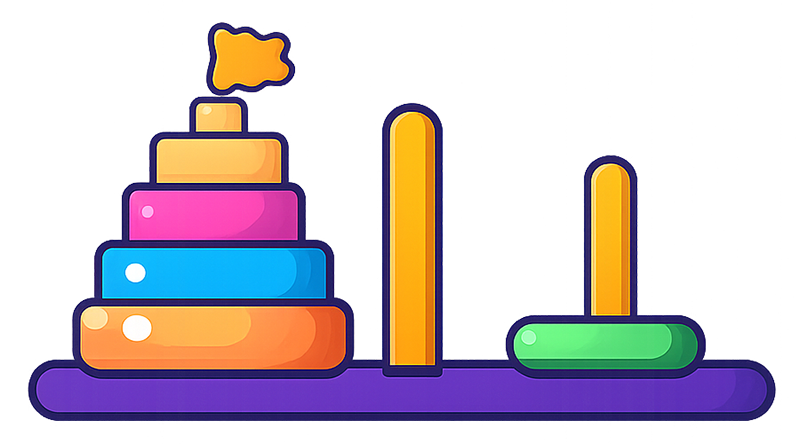 Move one disk at a time between three towers. Larger disks can never sit on smaller ones. These simple rules encourage planning and logical thinking.